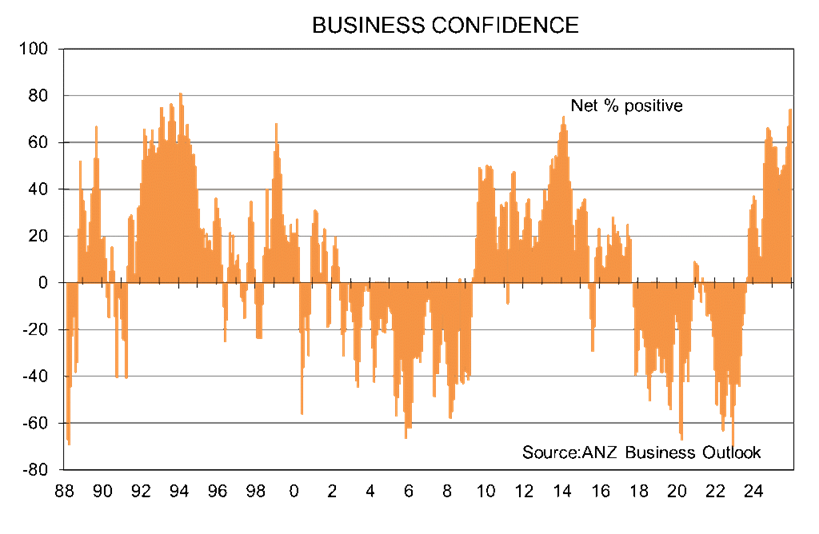 Of key importance when it comes to believing that better times lie ahead are the results of the ANZ’s final Business Outlook survey released just ahead of Christmas. They showed a rise in the net proportion of businesses confident about the economy in the year ahead to a very high 74%.