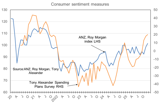 Consumers strongly indicate that they plan spending more with my own Spending Plans Survey showing a net 20% of people plan more buying of things. The ANZ Roy Morgan measure has just reached a four and a half year high.